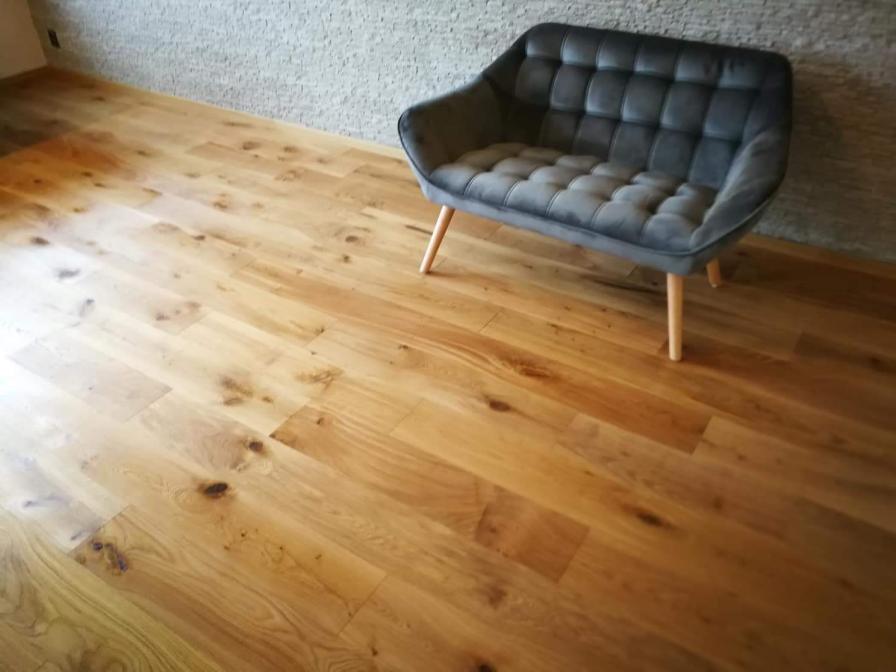 Kdyby jste viděli ten strašidelný podklad, který jsme museli dorovnávat! Nakonec vše dobře dopadlo a Martin si dnes užívá tuto dubovou rustikální podlahu ošetřenou voskovým olejem OSMO.