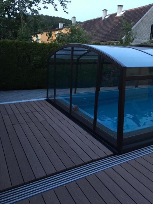 Skvělá spolupráce s manželi Makrlíkovými, kteří potřebovali obložit svůj bazén WPC materiálem a vybrali ten nejhezčí – s reliéfem dřeva.